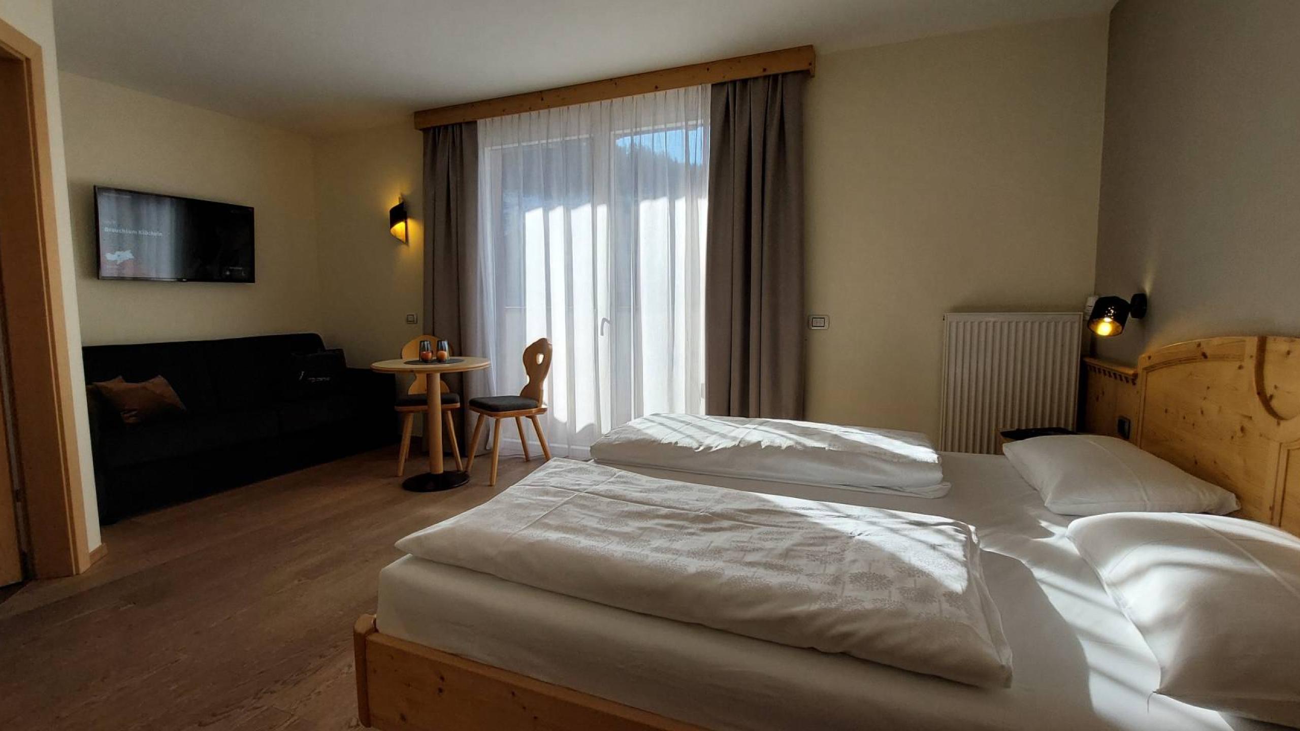 Plenty of space for your holiday wishes: Your extra-large Superior Cir room not only impresses indoors but also outdoors, with a fantastic view of Sassolungo/Langkofel and Monte Pana. Perfect for those who love to gaze at the deep crimson evening sky – simply breathtaking!