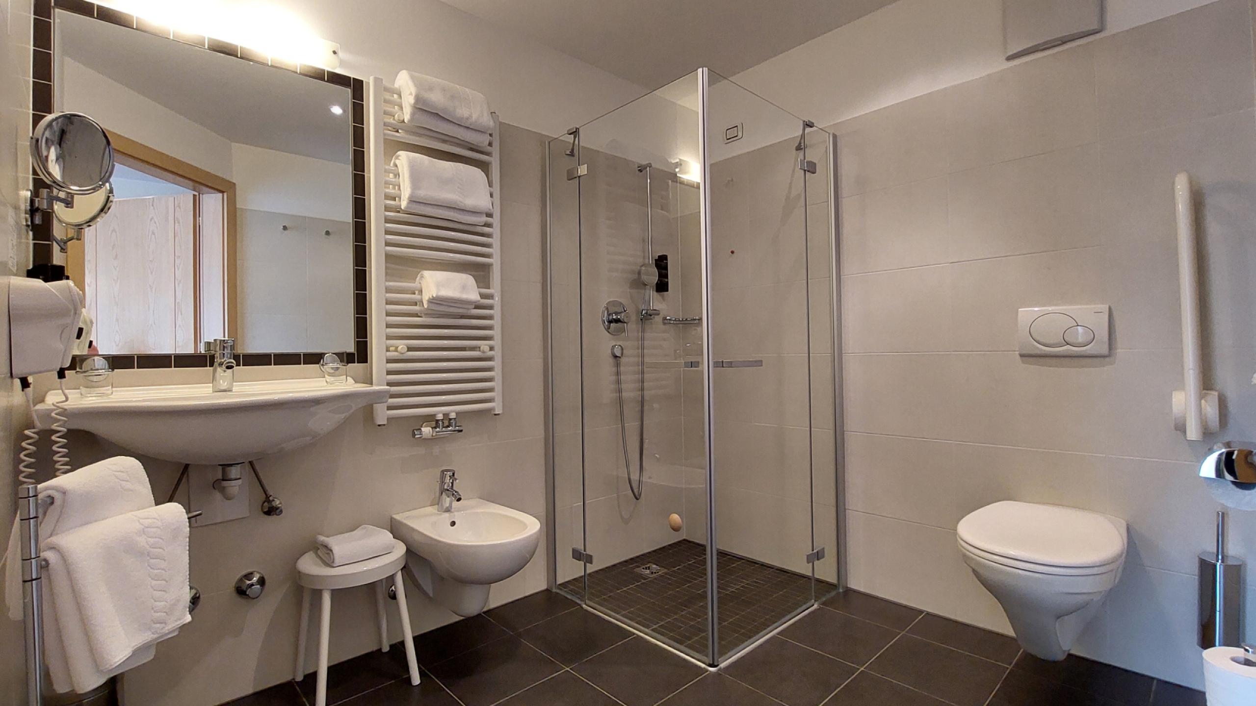 - Bathroom with shower, bidet, WC, hairdryer, make-up mirror