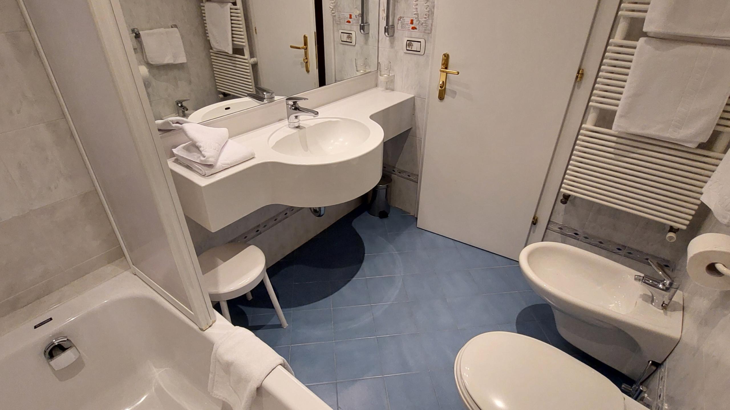 - Bathroom with bathtub with shower attachment, bidet, WC, hairdryer and make-up mirror