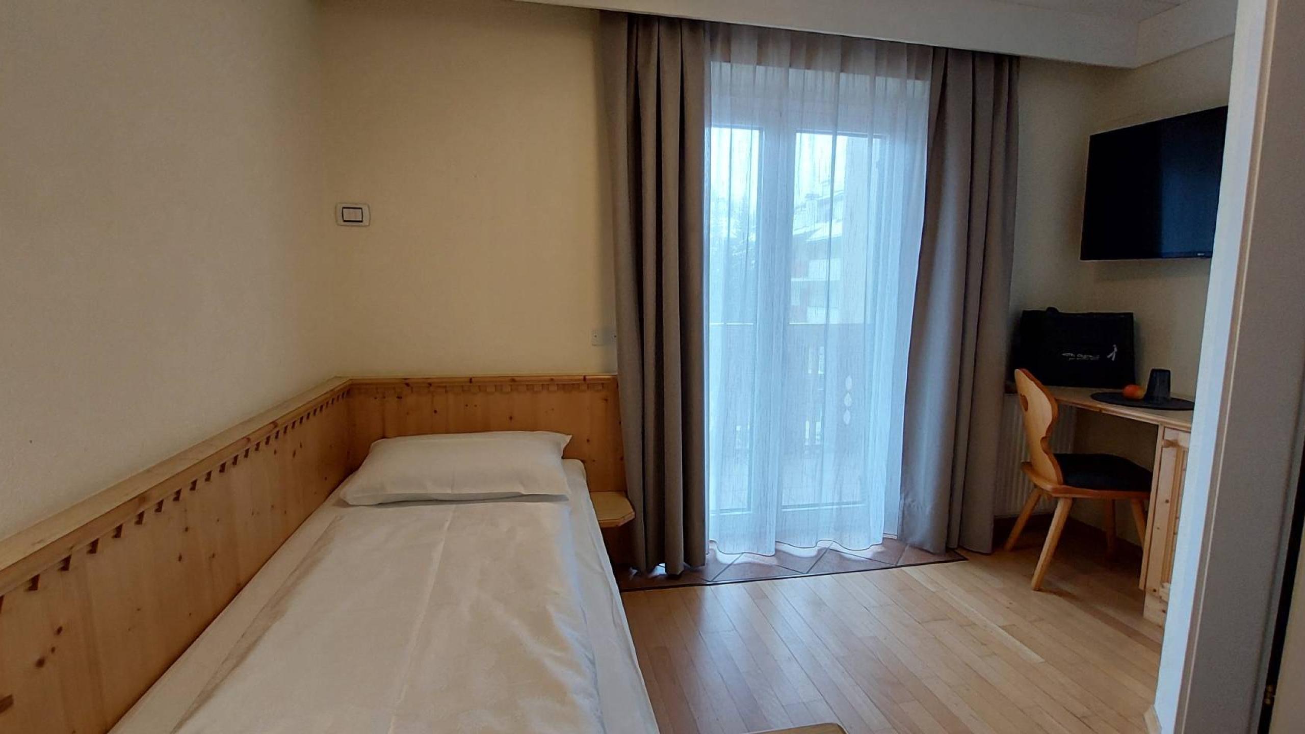 Nella tua piccola e raffinata camera singola PIC troverai tutto il necessario per una vacanza all’insegna del comfort in Val Gardena: mica male! L’arredamento in legno di alta qualità assicura comfort, calore e una permanenza piena di salute. Questo spazio è perfetto per chi si alza presto: i primi raggi di sole verranno a svegliarti al mattino facendo capolino dal balcone. Eccoli che arrivano!